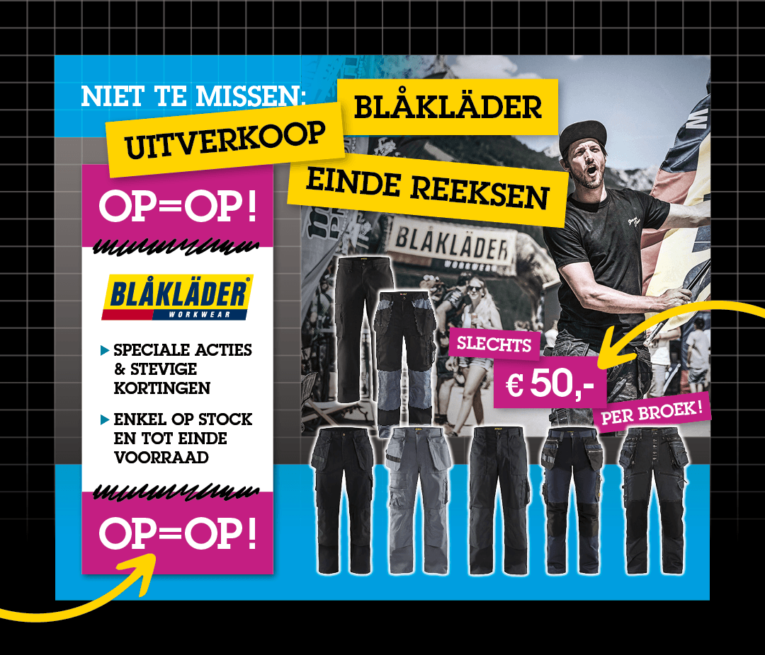 Werk je in de bouw, techniek of industrie? Of ben je een stevige doe-het-zelver die graag materiaal draagt dat écht tegen een stootje kan? Dan hebben we goed nieuws: bij Iliaens nv in Alken is er Blåkläder-uitverkoop van einde reeksen.